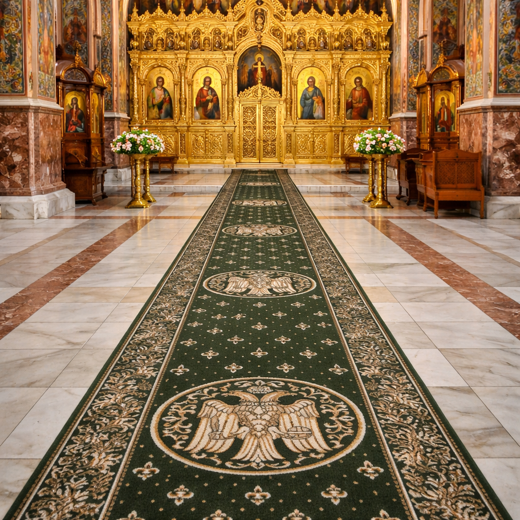 Traversa Festonata, Model Bisericesc 15032/310, Latime 100 cm, Verde